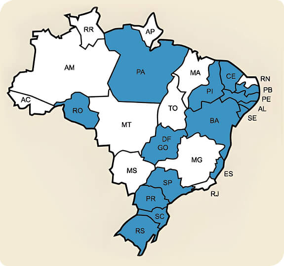 Estamos presentes e atuantes em 8 estados e 3 regiões do Brasil