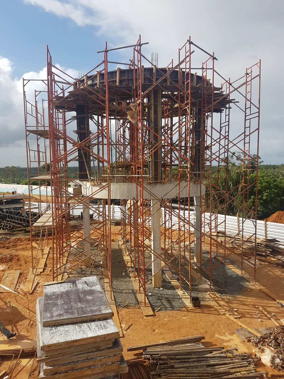 Projeto estrutural das unidades que compõe o Sistema Integrado de Abastecimento de Água da Região de Machadinho em Camaçari (BA). O sistema é composto por reservatórios apoiados em concreto armado de 3.000m³, 2 reservatórios apoiados de 4.000m³ em concreto protendido, um reservatório elevado de 50m³, casa de química, caixas de reunião e outras estruturas de porte menores que os citados acima.